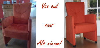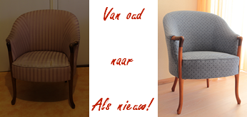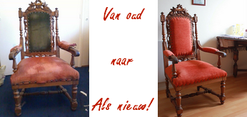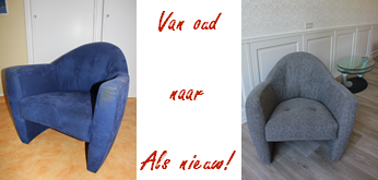 | |   Zoals hiernaast goed te zien is , kunt u met een nieuwe bekleding uw stoel een tweede leven geven, hoe oud deze ook is.