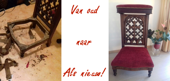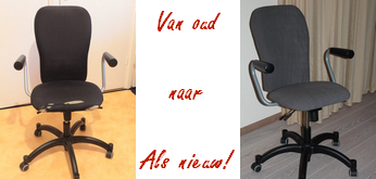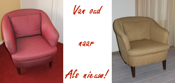 | |   Zoals hiernaast goed te zien is , kunt u met een nieuwe bekleding uw stoel een tweede leven geven, hoe oud deze ook is.